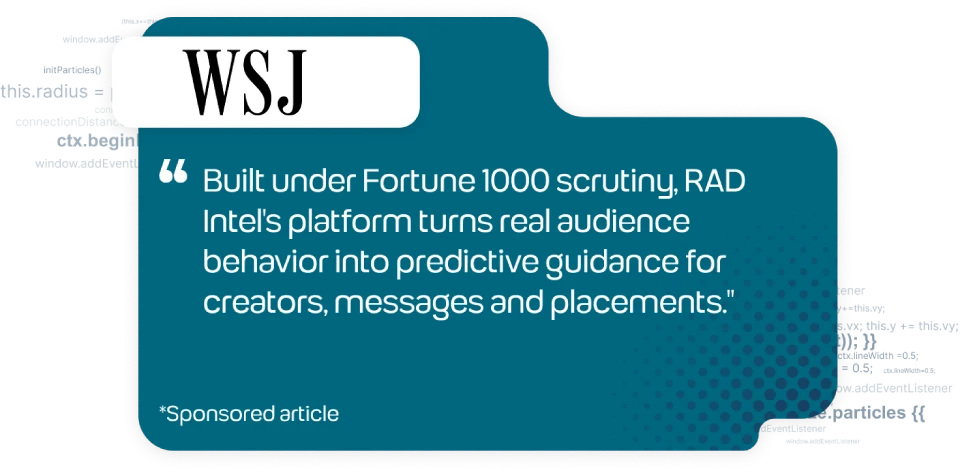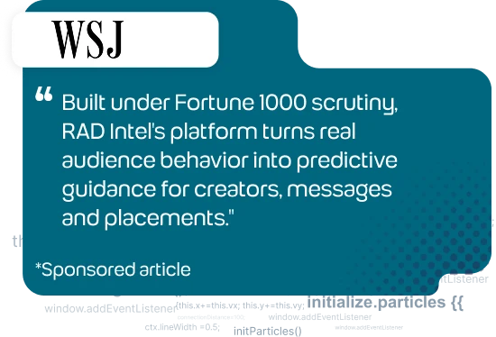 RAD Intel validates content strategy and performance predictions using proprietary AI models combined with 600 API connections that analyze real-time audience engagement, sentiment, and content trends. Our approach ensures: